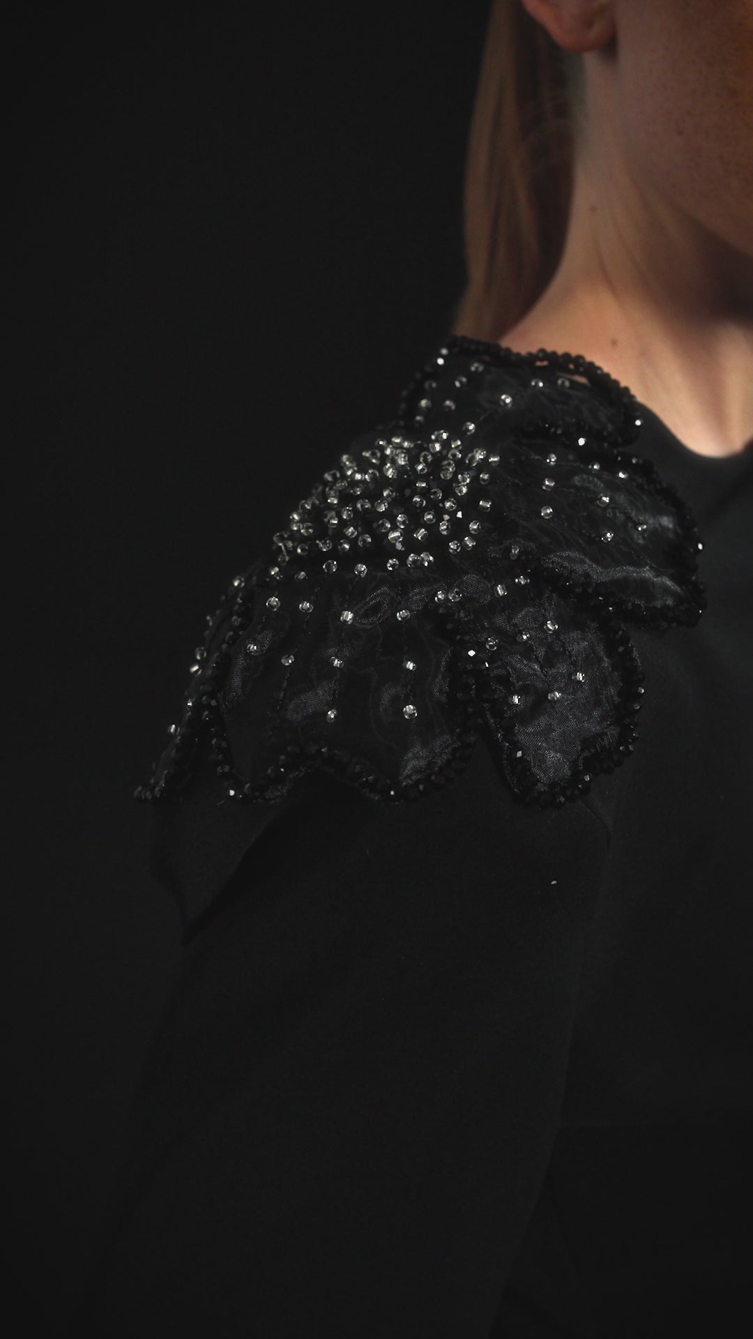 - Vatkalı omuzları boncuk çiçek işlemeli