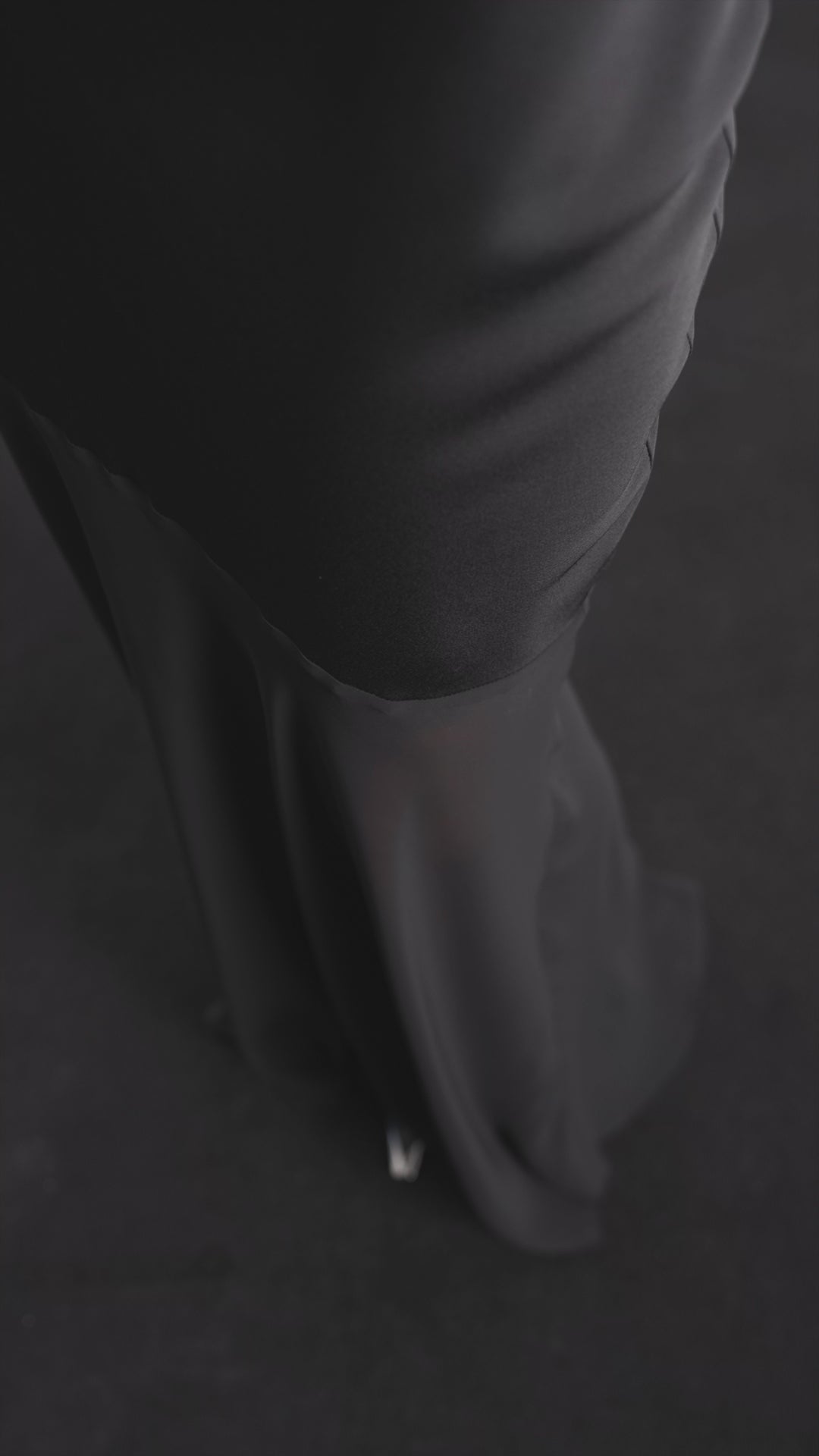 AQUA SATEN & ŞİFON KARIŞIMLI ELBİSE | SİYAH