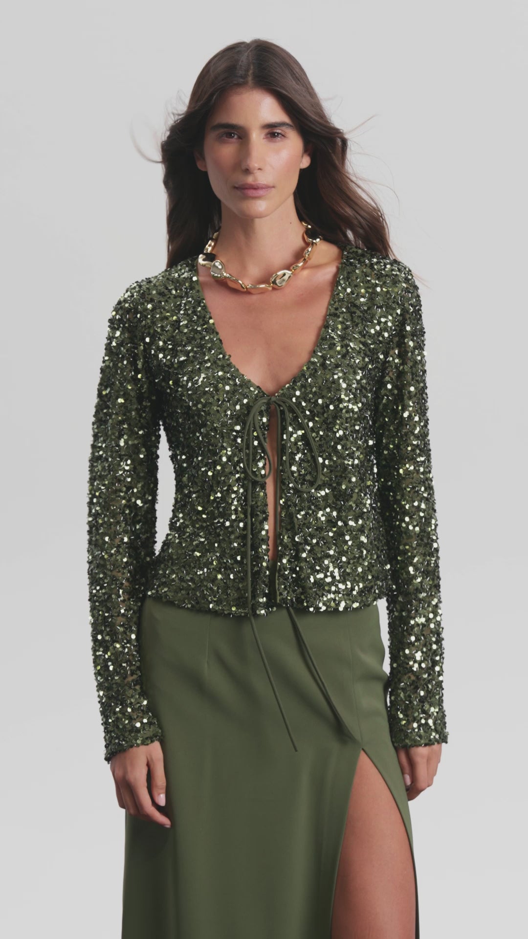 LUNA BAĞLAMALI PAYET BLUZ | HAKİ